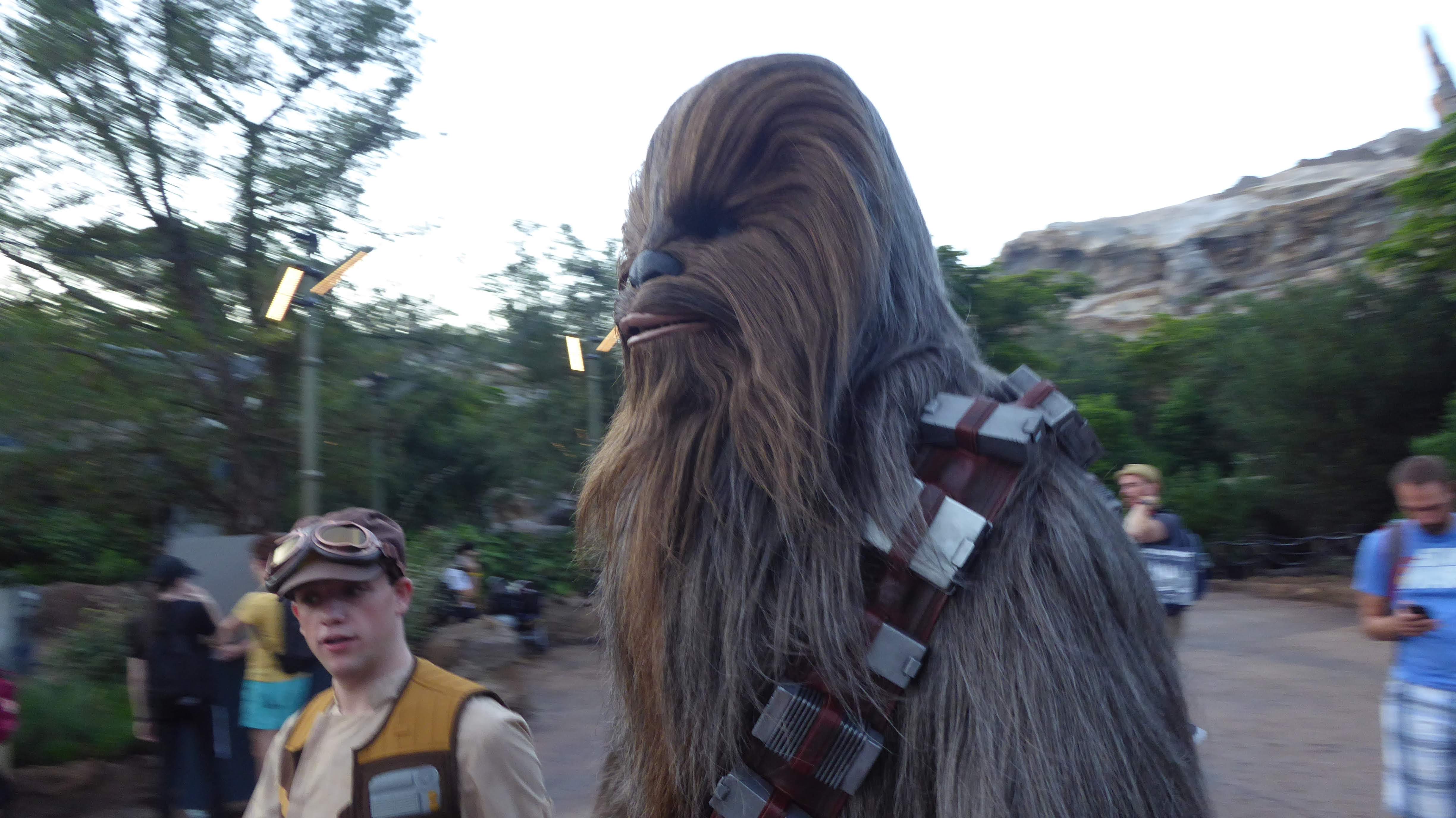 We couldn’t get any reservations for the cantina, droid building or light sabre workshop, but in our 2-and-a-half-hour visit, we experienced more than enough to make the visit worthwhile. I’ll be interested to read other reports of opening day because I think there was a lot of luck (in the timing of our arrival) in making our visit so special. I spoke to another guest from the UK who told me that he arrived by car and at first, was turned away from the resort and had to drive in a huge loop to come back for a second go. He got lucky because on his second pass, they’d just opened the car park and he was 9th car in line. I wonder how many guests had a similar experience but then ended up at the end of a very long queue.