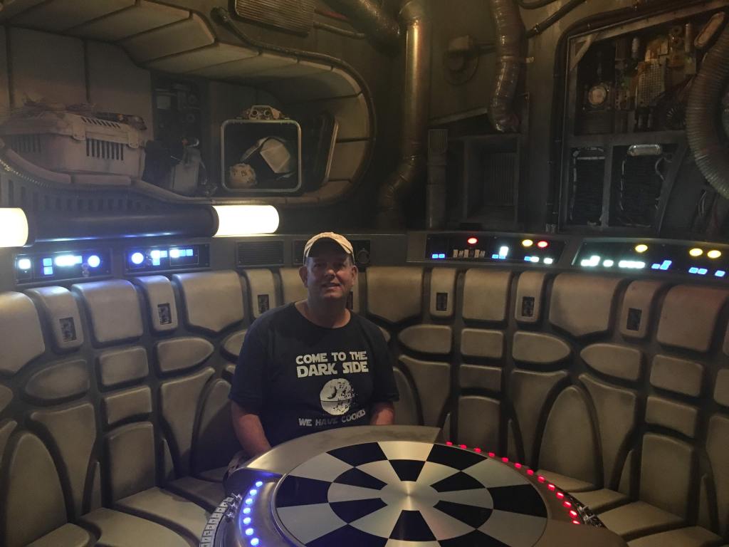 Queuing at theme parks can be a bit of a drag, but not in this case. As we passed down corridors seemingly cut into the stone, through cargo bays and workshops, the true beauty of this new land was brought to life. Little nicks in the metalwork, perhaps from laser blasts, worn-looking crates and digital displays using some unknown font all added to the sense of being right in the middle of the Star Wars universe. We queued less than 30 minutes before getting on the ride (we were both gunners sitting behind the pilots) which made for an exhilarating ride. There was a tremendous feeling of satisfaction as you pushed the button, releasing a blast and downing TIE fighters.