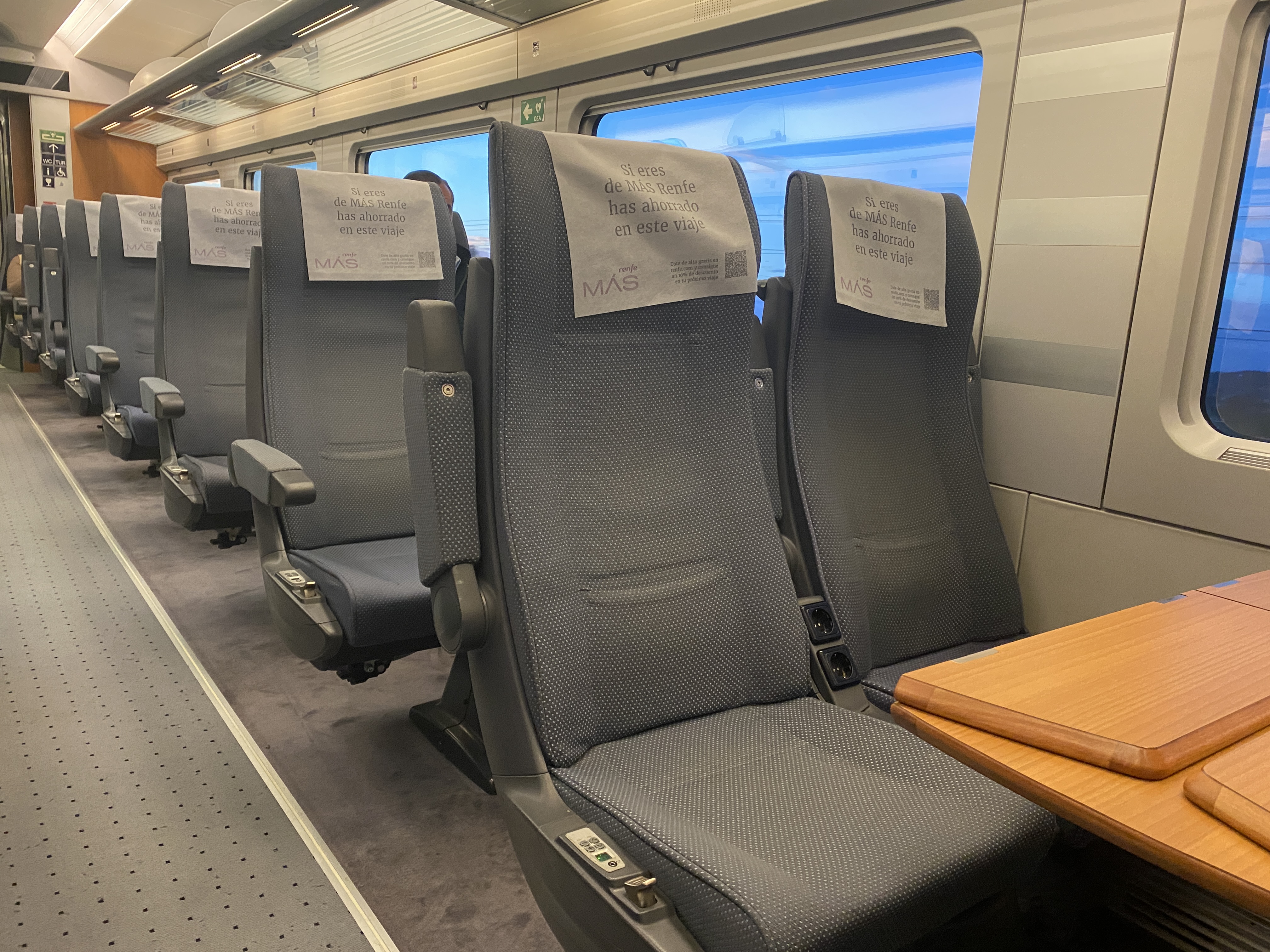 The seats on Spanish high-speed trains are quite comfortable, with many featuring charging ports. Most routes have a buffet car offering a range of snacks and drinks. We’ve only used the buffet service once, but the bacon and cheese baguette we had on our journey to Zaragoza was delicious.