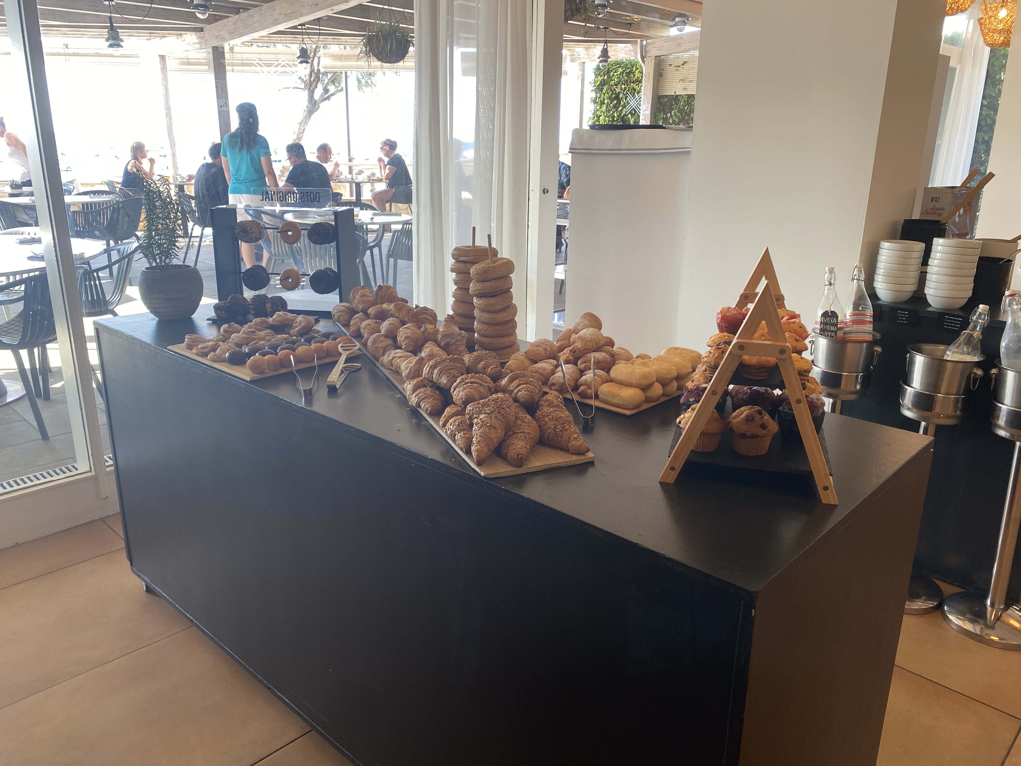 The breakfast room is also connected to the bar, and you eat either inside or out on the terrace. There’s a good selection of cereals, pastries and croissants, in addition to hot food and show cooking.